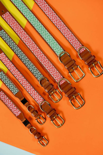 Our pet collars are handcrafted in Kwa-Zulu Natal, South Africa by local artisans. Ethically sourced glass beads are stitched to genuine leather and fastened by a brass buckle to ensure durability and authenticity. Each collar is unique and might differ slightly in design from these images.