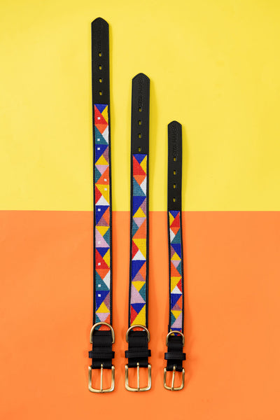 Our pet collars are handcrafted in Kwa-Zulu Natal, South Africa by local artisans. Ethically sourced glass beads are stitched to genuine leather and fastened by a brass buckle to ensure durability and authenticity. Each collar is unique and might differ slightly in design from these images.